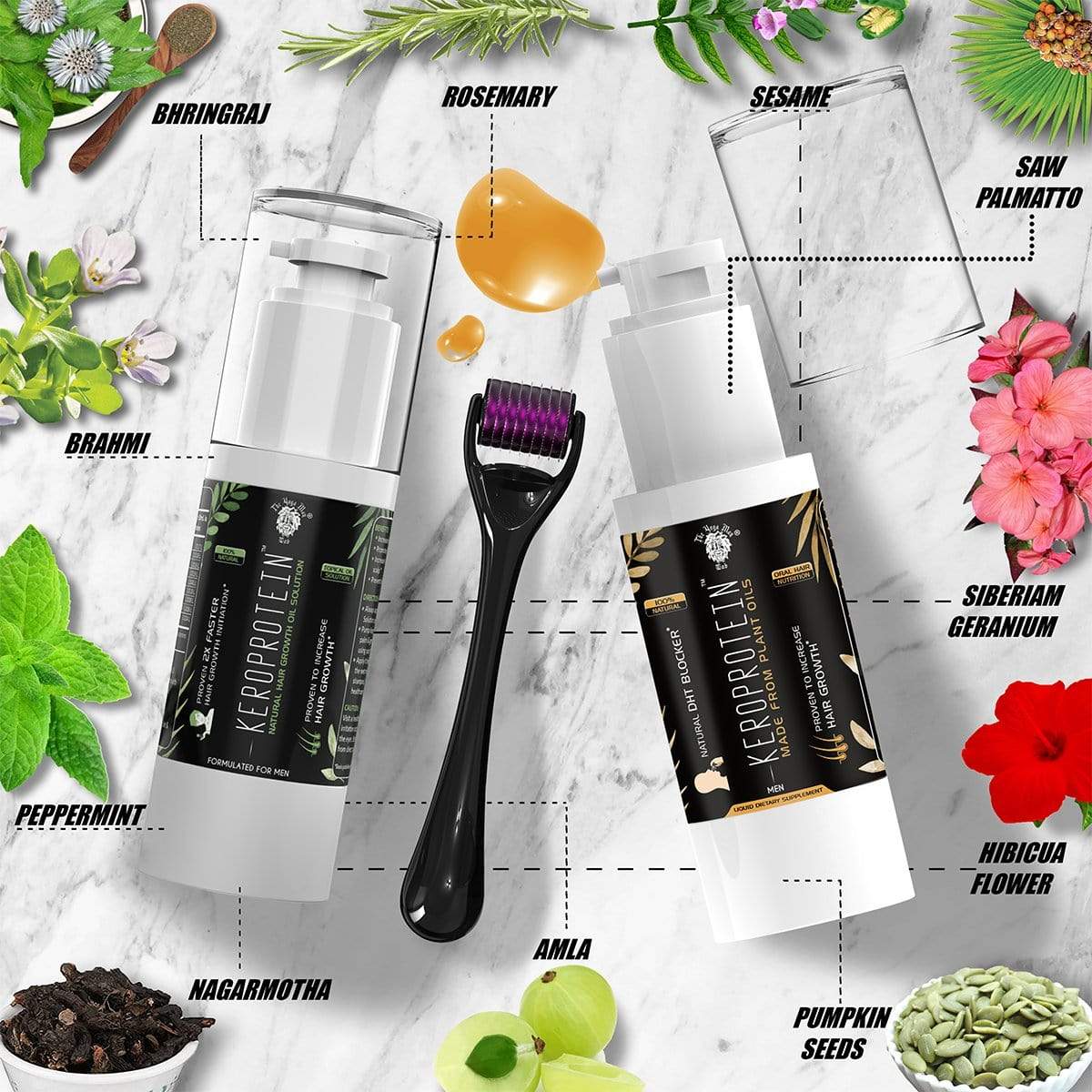 YogaManLab® KEROPROTEIN Hair Growth Kit (Men) | Topical Hair Growth Oil (30ml) + DHT Blocker Oral Oil Shots (30ml)+ Keroneedle 0.5mm |Made From Natural Plant Oils