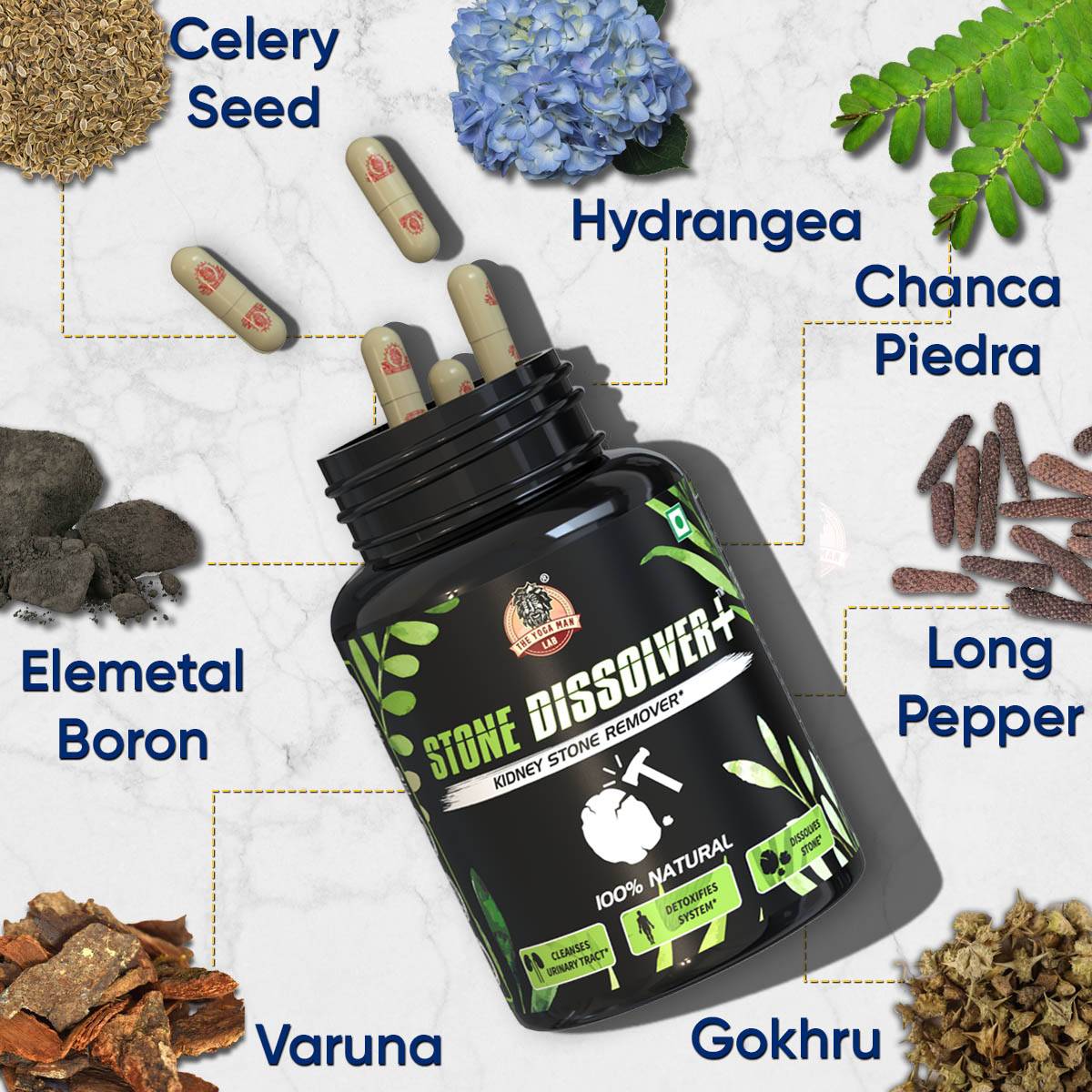 YogaManLab® STONE DISSOLVER+ - Stone Remover Ayurvedic Supplement | 100% Natural & Plant Based